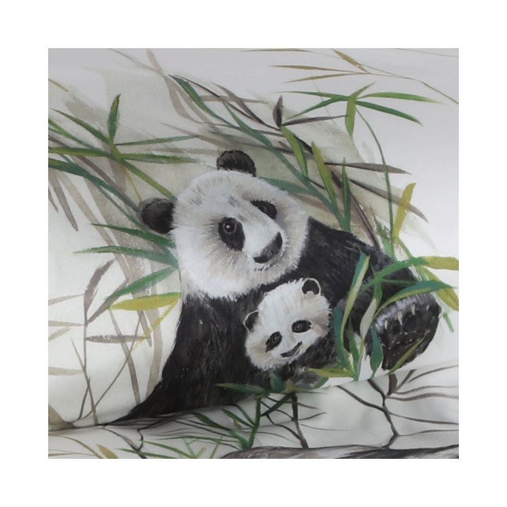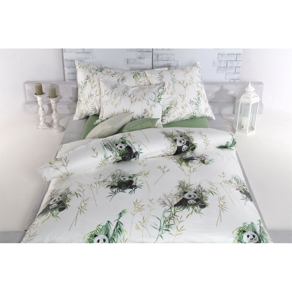 Tamara R Bettwäsche aus mercerisiertem Feinsatin PANDA grün mit Bambus auf hellem Grund, aus hochwertiger Mako-Baumwolle. Marken Satin Bettwäsche Tamara R Selection - ausschliesslich Dessins und Stoffe höchster Qualität. Nur die besten Druckereien erhalten Aufträge für diese Kollektion! Mit aussergewöhnlichem Charakter und geniessen absolute Exklusivität.