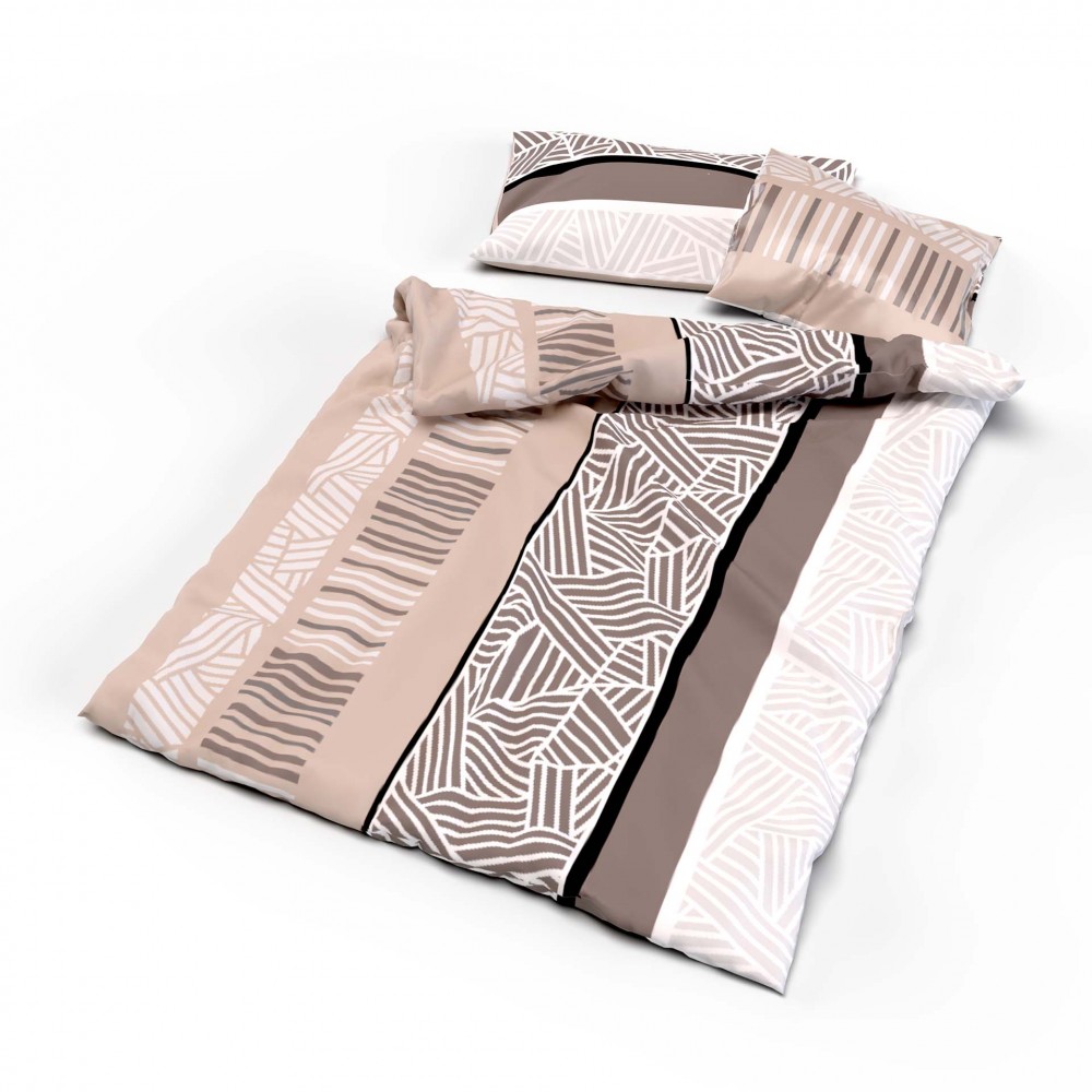 Diese Satin Bettwäsche FLAVIA mit geometrischen Muster mit sand-beige Tönen, wurde aus der gekämmten Naturfaser Baumwolle hergestellt. Ist angenehm auf der Haut, anschmiegsam, atmungsaktiv und sehr gut als Sommer-Bettwäsche geeignet. Zudem werden nur Reaktivfarbstoffe verwendet, was die Farbechtheit und Weichheit des Gewebes entscheidend verbessert. Die Farben bleiben jahrelang unverändert schön.
