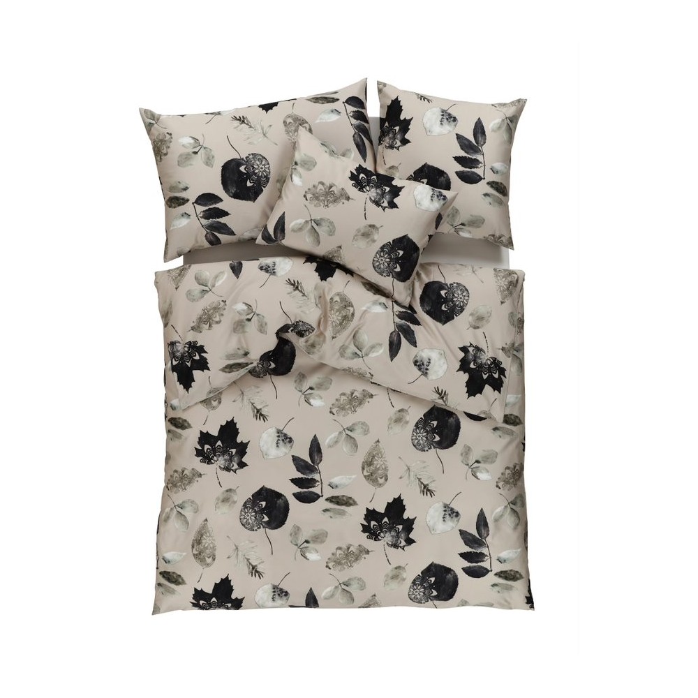 Tamara R, Bettwäsche Feinsatin SCARLETT schwarz, mit modernem Blatt-Muster auf erdfarbigem Grund, aus hochwertiger Baumwolle. Toll kombinierbar mit Uni Bettwäsche. Marken Feinsatin Bettwäsche Tamara R Emotion - ausschliesslich Dessins und Stoffe höchster Qualität. Nur die besten Druckereien erhalten Aufträge für diese Kollektion! Mit aussergewöhnlichem Charakter und geniessen absolute Exklusivität.