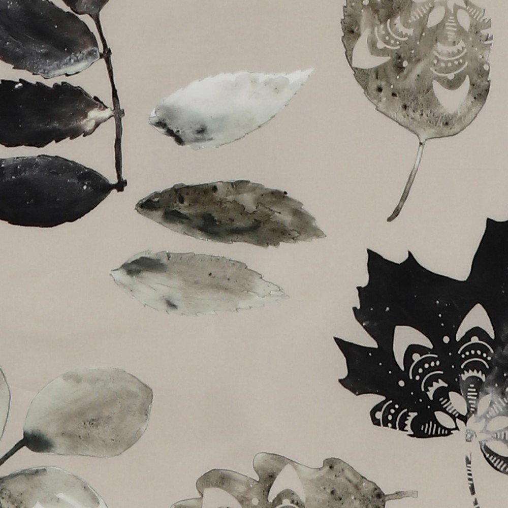 - Farbe: schwarzes, modernes Blatt-Muster auf erdfarbigem Grund