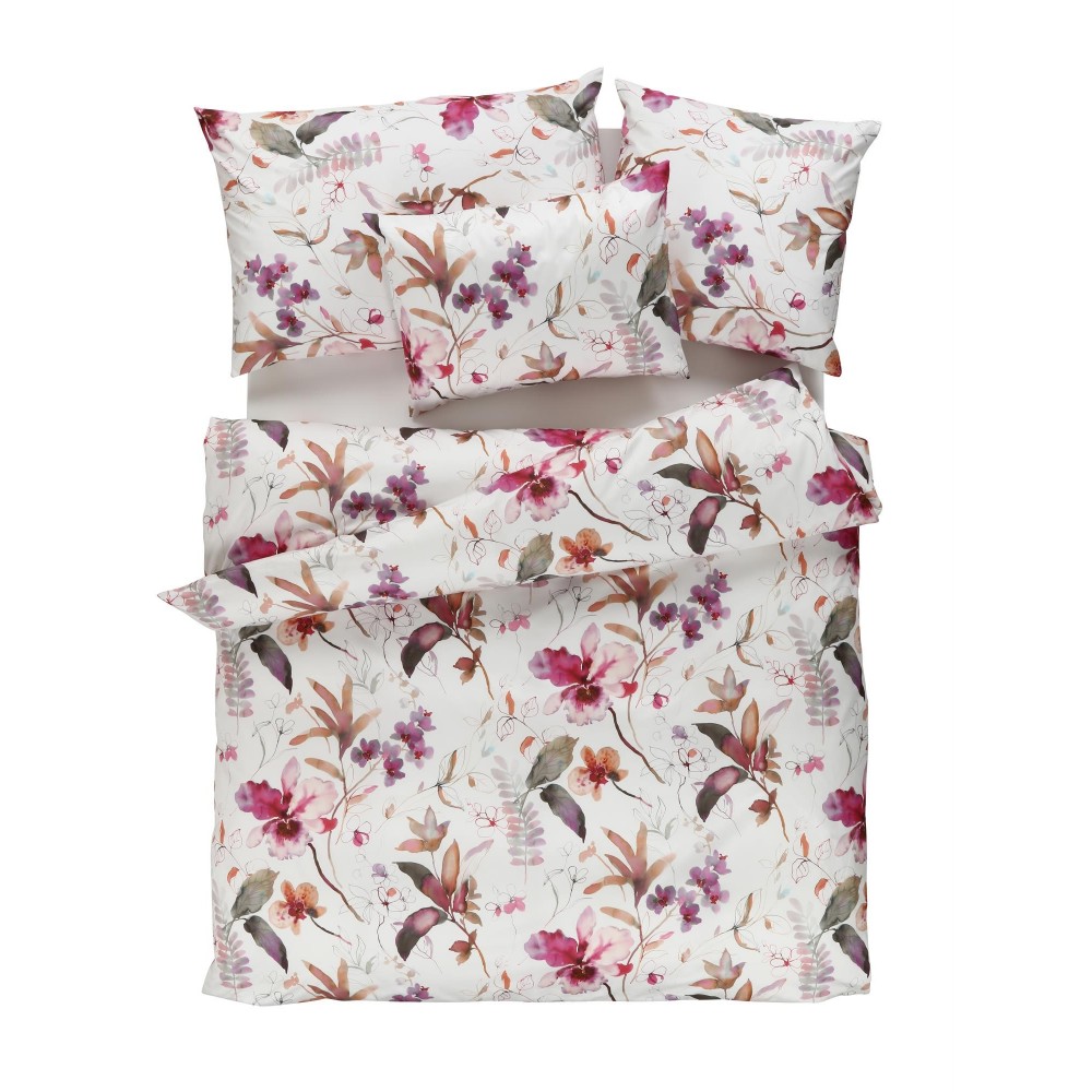 Tamara R, Bettwäsche 100% Baumwolle-Feinsatin mercerisiert, Bettwäsche SINA pink, Blumenmuster mit Bordeaux-Lila Farben auf hellem Grund. Marken Satin Bettwäsche Tamara R Selection - ausschliesslich Dessins und Stoffe höchster Qualität. Nur die besten Druckereien erhalten Aufträge für diese Kollektion! Mit aussergewöhnlichem Charakter und geniessen absolute Exklusivität.