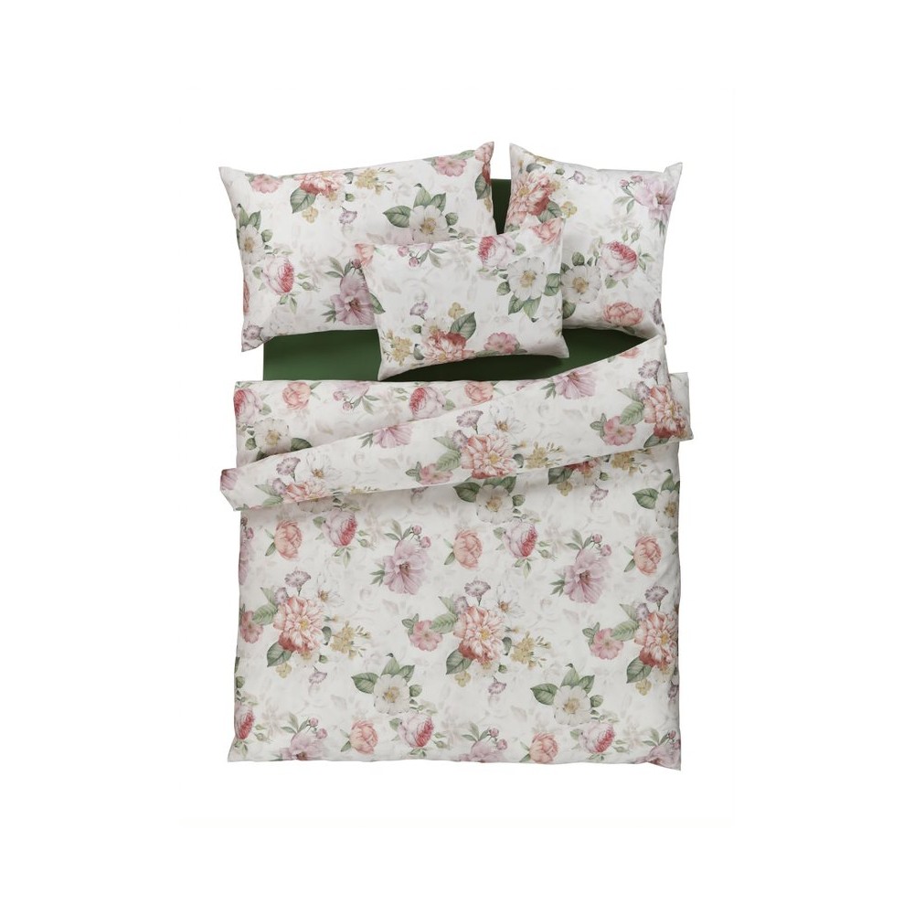 Tamara R Bettwäsche aus mercerisiertem Feinsatin CAROLE mit Blumen- und Blättermotiv in zarten rosa-grün auf hellem Grund, aus hochwertiger Mako-Baumwolle und Soft-Finish. Marken Feinsatin Bettwäsche Tamara R Selection - ausschliesslich Dessins und Stoffe höchster Qualität. Nur die besten Druckereien erhalten Aufträge für diese Kollektion! Mit aussergewöhnlichem Charakter und geniessen absolute Exklusivität.