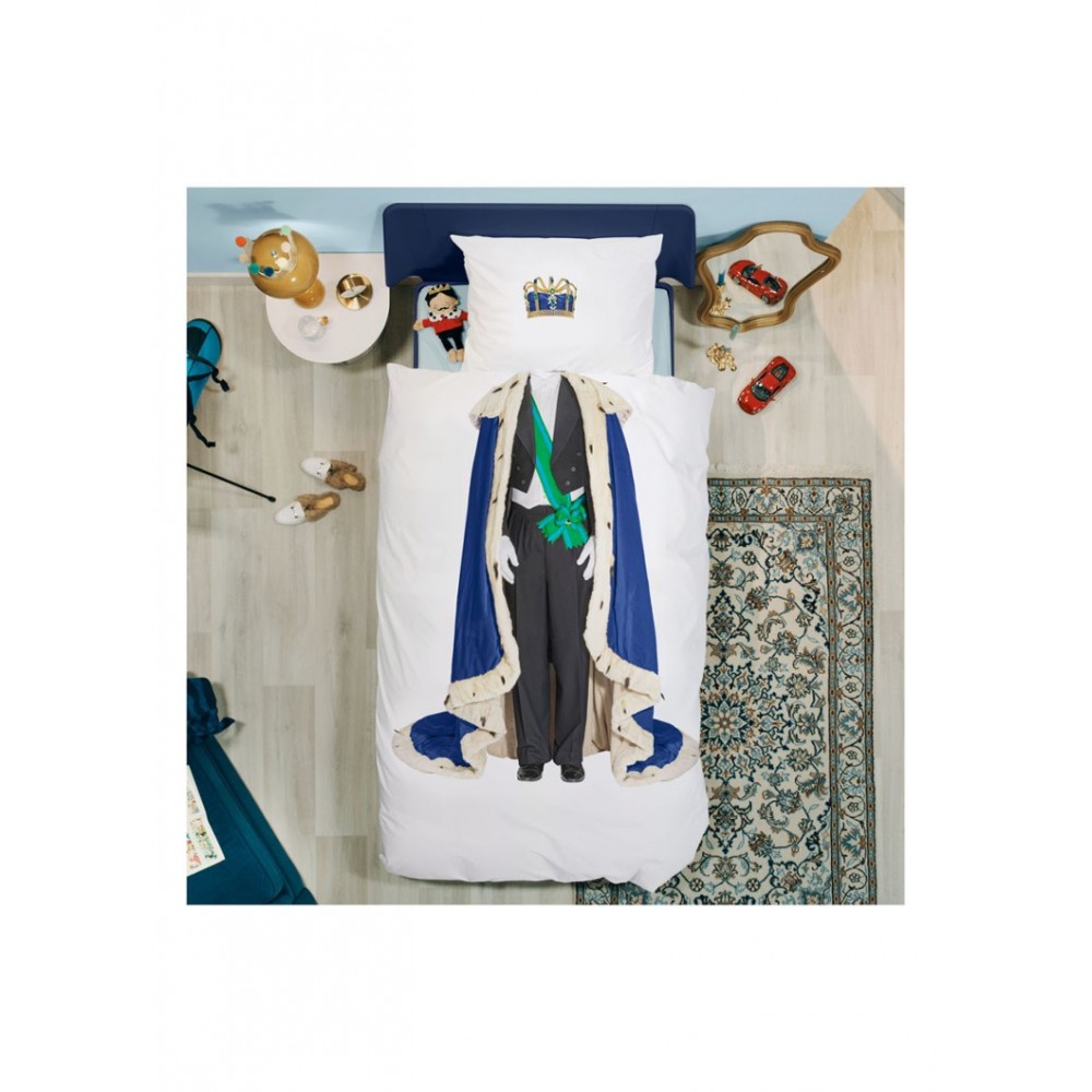 Schöne Jugend-Bettwäsche Garnitur mit königlichem Motiv KING aus 100% hochwertige, weiche Perkal Baumwolle mit Fotodruck und Reissverschluss.